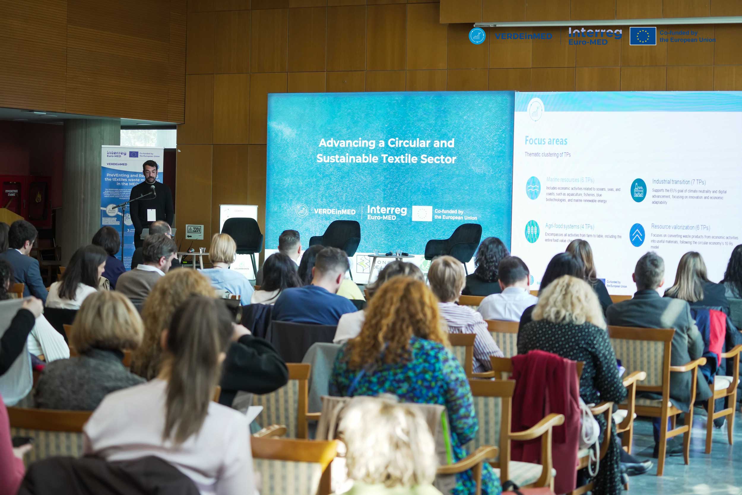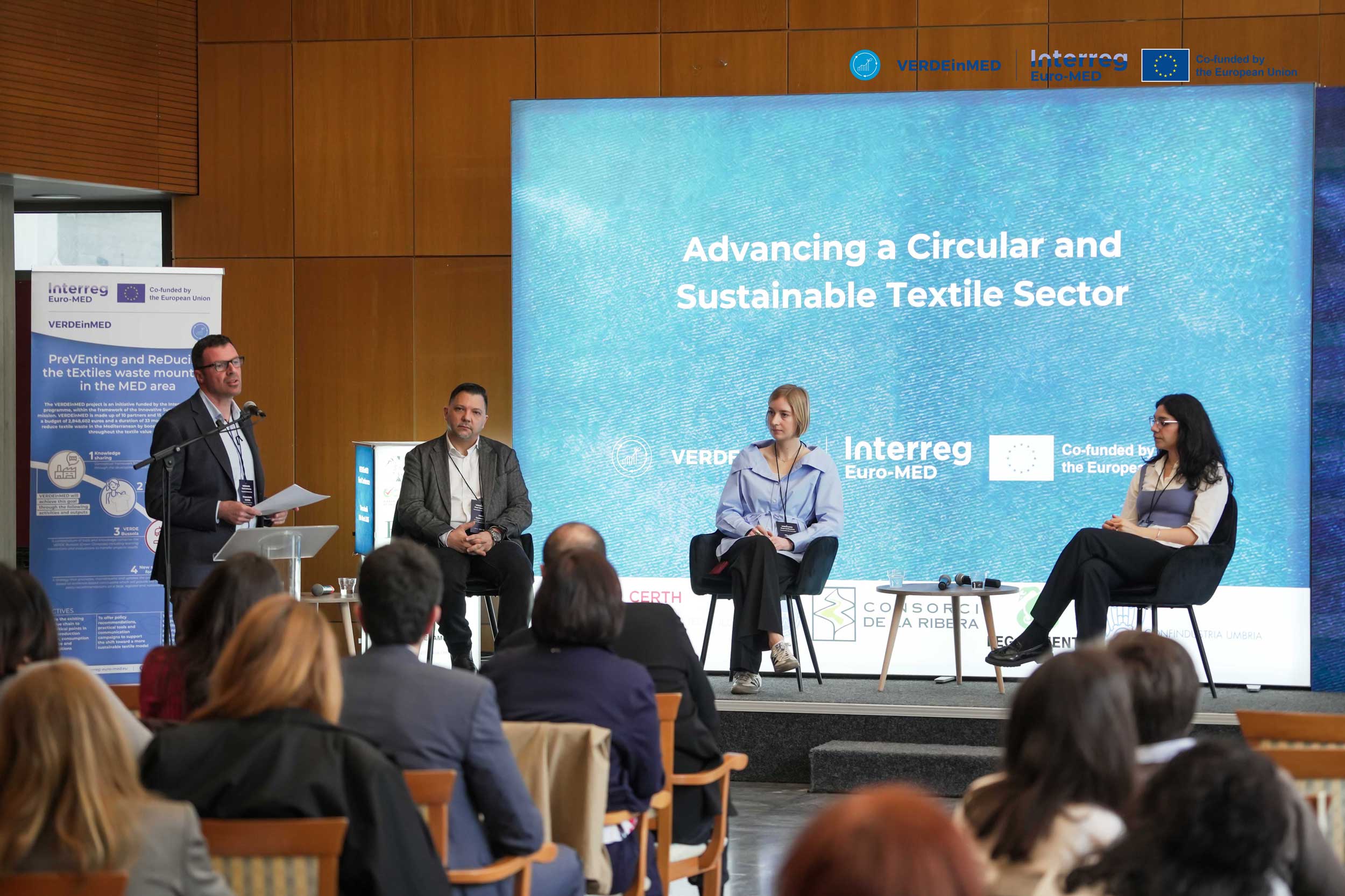 The European project VERDEinMED held its final conference, titled “Advancing a Circular and Sustainable Textile Sector,” on 13 March at the Thessaloniki Town Hall. The event marked the culmination of the project’s efforts to promote circularity in the Mediterranean textile sector. Attendees included experts from European institutions, regional and local authorities, research centres, and industry actors.